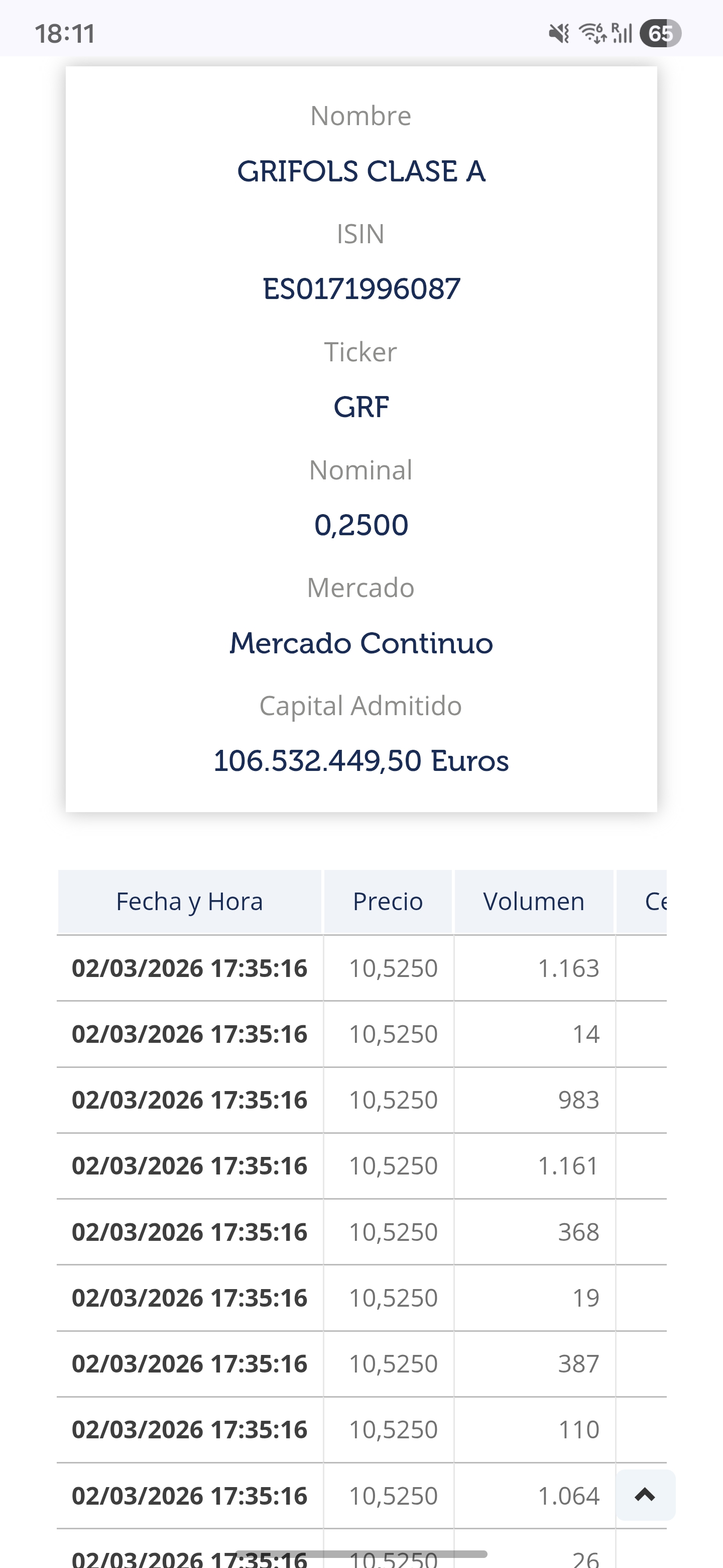 Según negociacion BME 17.35 El cierre seria 10,525 Hubo robasta. Alguien lo dudaba?