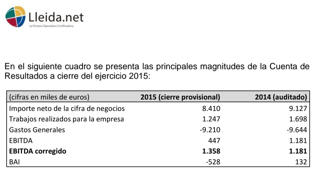 Datos de 2014 y 2015. Valía lo mismo que ahora mismo. Esperamos más de 4 millones de EBITDA (que tiene muchas posibilidades de superarlos ampliamente) y 2.7 de neto (esto lo pongo en duda, creo que será algo menos, pero es la previsión). Está clara la incongruencia de lo que está pasando. No tiene sentido ver hoy el precio 65 céntimos por debajo de los máximos que consiguió con los datos del primer semestre sin ninguna noticia que lo avale.