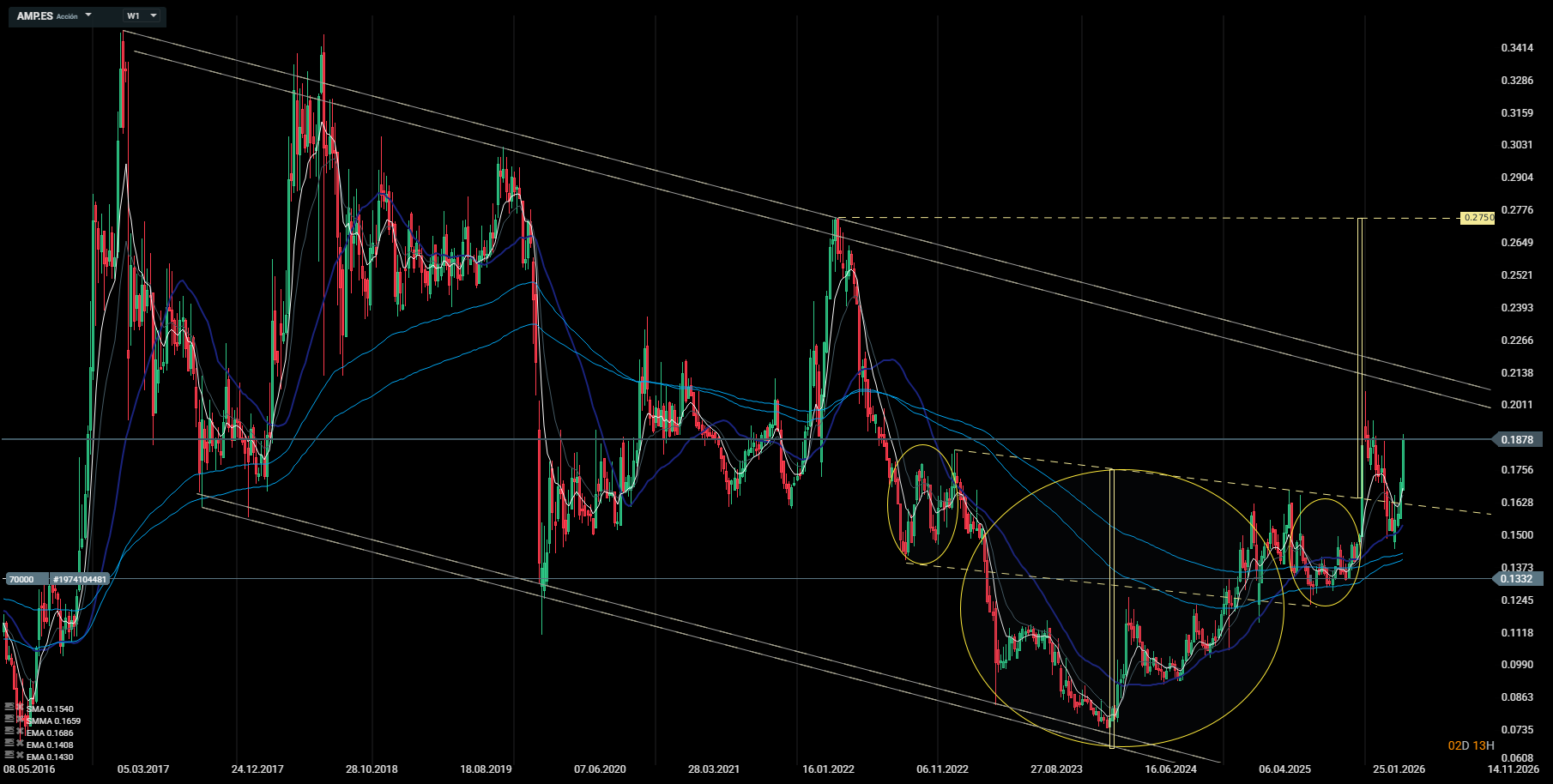 En gráfico semanal (objetivo el verano) hay un HCHi que le da como objetivo 0,275€.