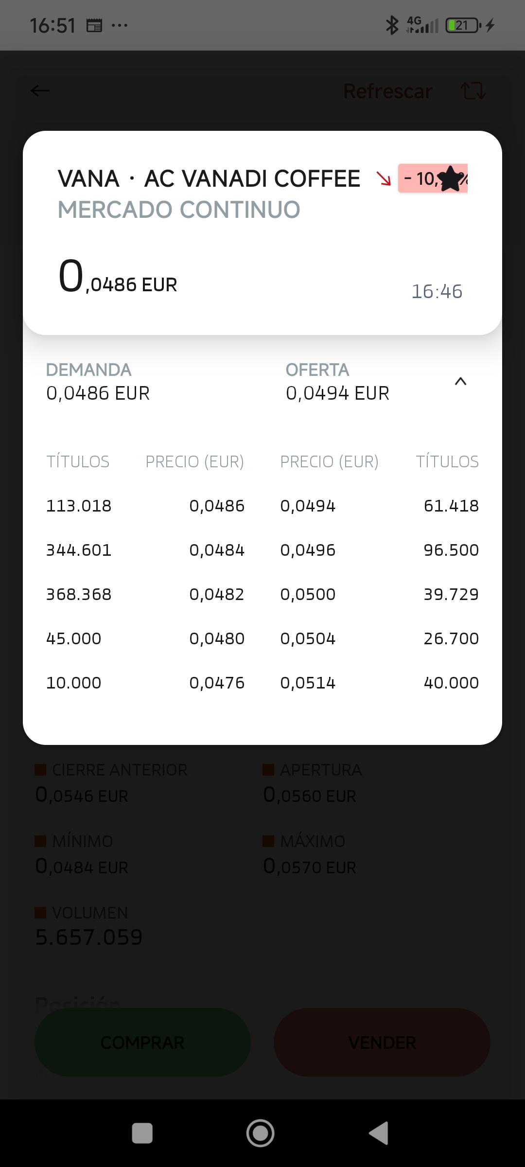 grafico de la accion Vanadi Coffee