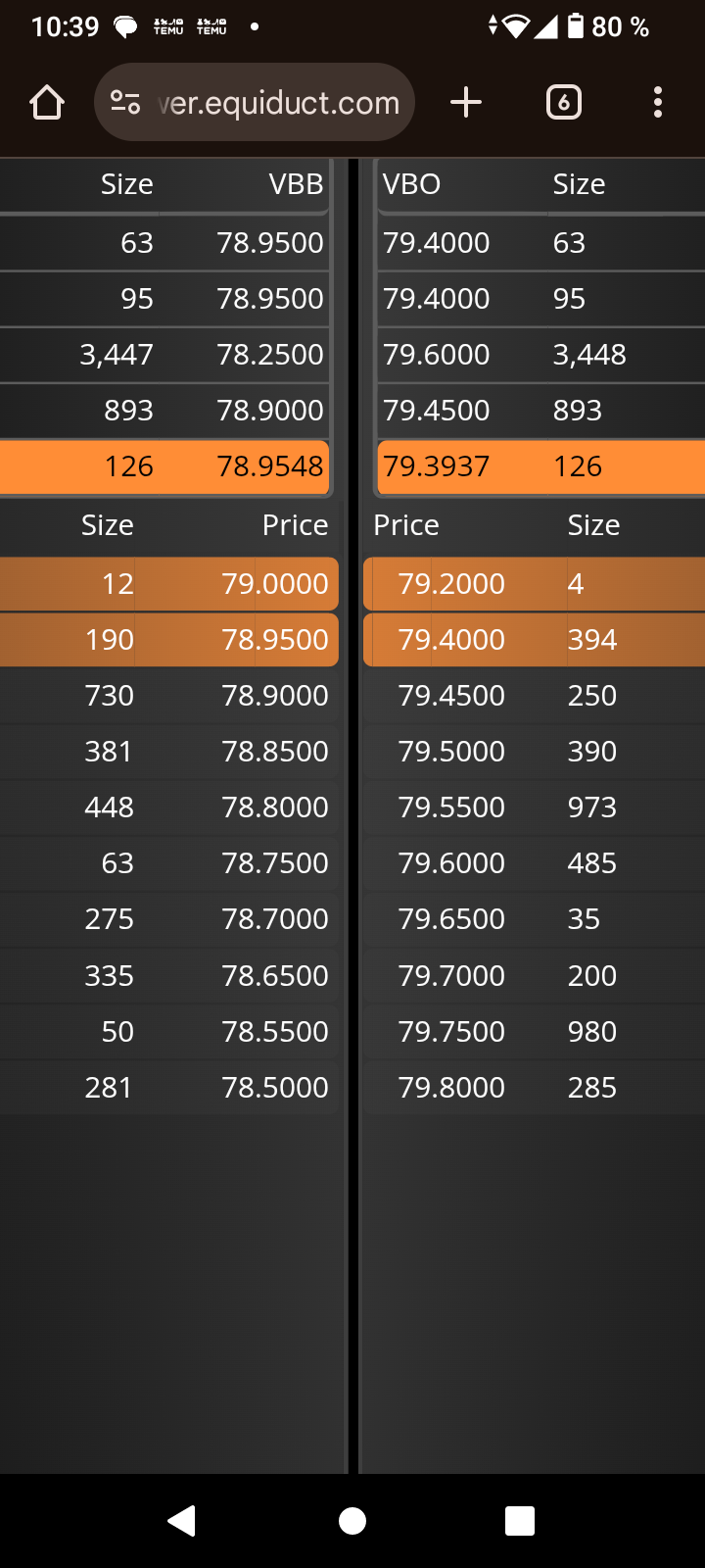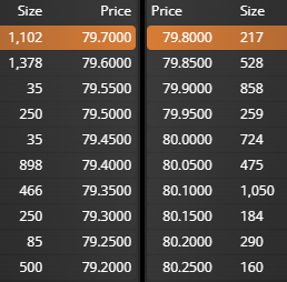 Máximo/Mínimo (día) 79.85 / 78.00